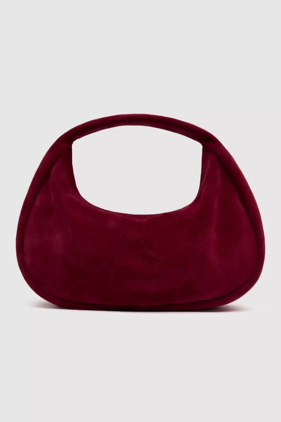 The Mini Bon Bon Bag boasts a buttery soft suede body, suede lining, zip closure and crescent shape. A nod to the mini baguette shapes of the 90s, the Mini Bon Bon bag is a playful addition to any capsule wardrobe.