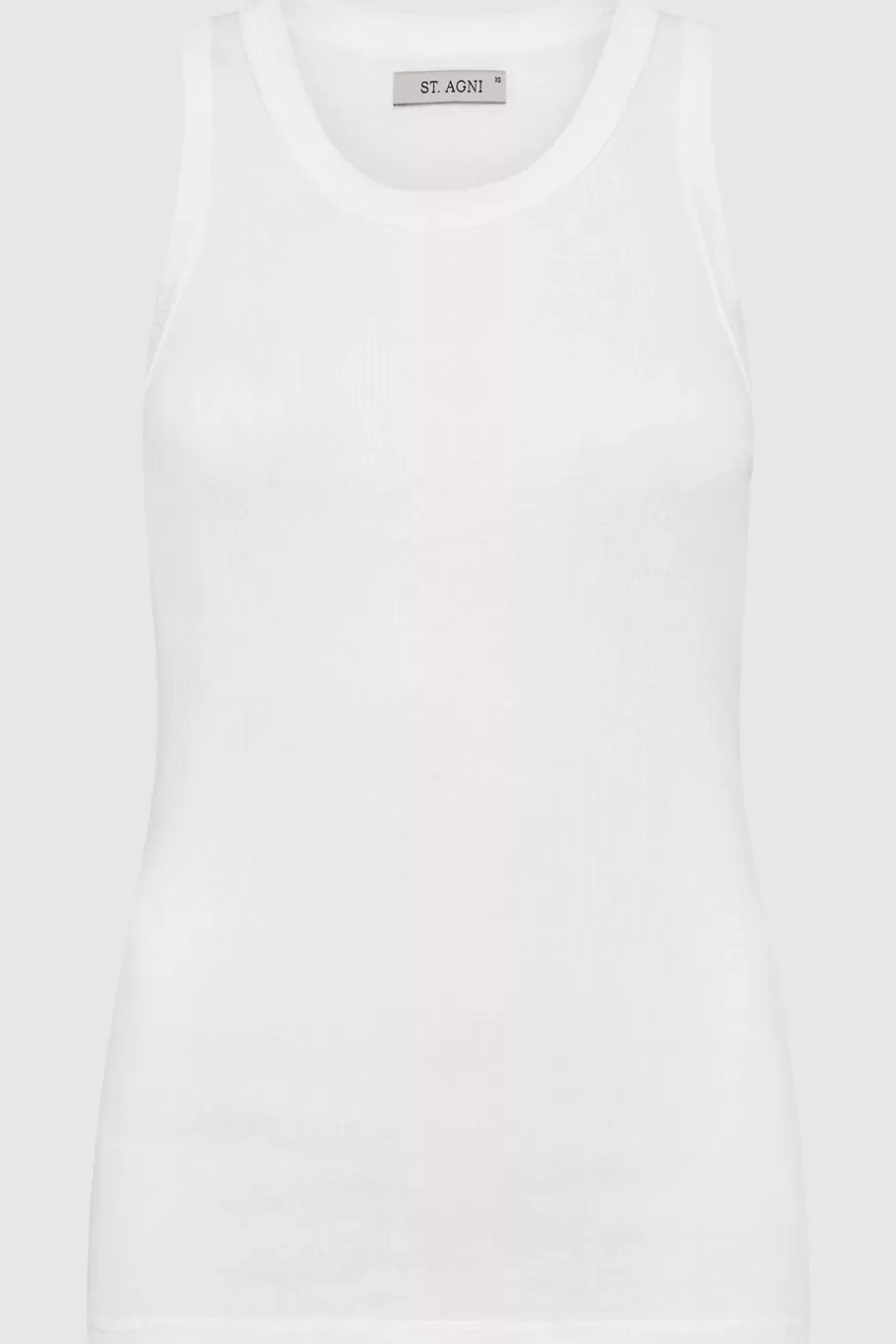 Scoop neck, fine rib, neck bind, sleeveless, slim fit.